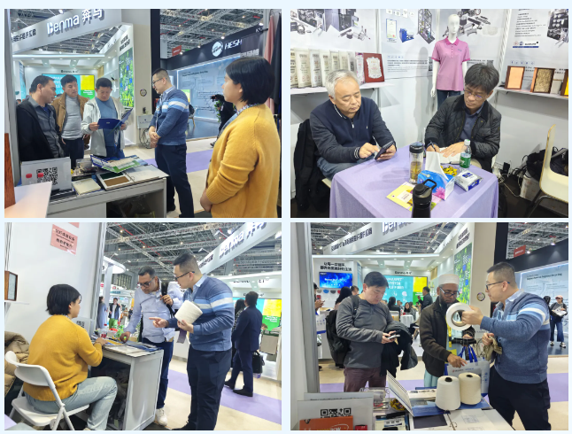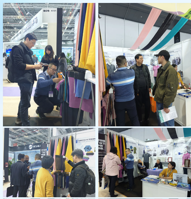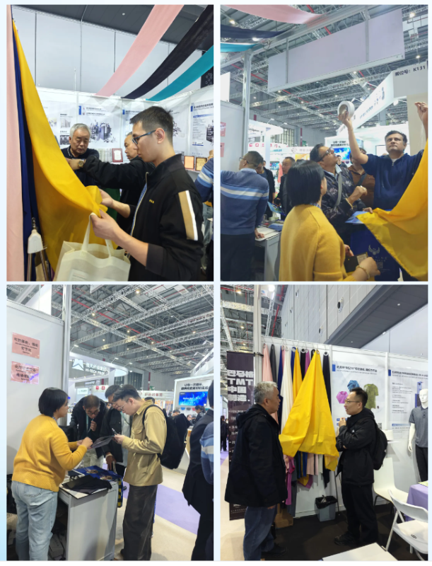 বুথের সামনে লোকজন আসা-যাওয়া করে। কেউ কেউ কাপড়ে ভরা নমুনা র্যাকগুলি ঘনিষ্ঠভাবে পরীক্ষা করার জন্য বিরতি দিয়েছেন, অন্যরা তাদের স্থিতিস্থাপকতা এবং শক্ততা পরীক্ষা করার জন্য থ্রেডগুলি টেনেছেন। কাস্টমাইজড ডেভেলপমেন্টের সম্ভাবনা নিয়েও ব্যবসায়িক দলের সঙ্গে আলোচনা হয়েছে।