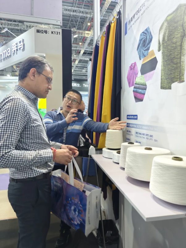বুথে, একটি সমৃদ্ধ পণ্যের ম্যাট্রিক্স নিঃশব্দে সাজানো হয়েছে—অত্যন্ত ইলাস্টিক স্পোর্টস ফাইবার থেকে নরম এবং ত্বক-বান্ধব হোম ফাইবার, এবং টেকসই পণ্য যা কার্যকারিতা এবং পরিবেশগত ধারণাকে একীভূত করে। প্রতিটি প্রদর্শনীর পিছনে রয়েছে বিভক্ত পরিস্থিতিতে গভীর প্রতিক্রিয়া। তাদের মধ্যে, "ডিজেন্টে" ব্র্যান্ডের ইলাস্টিক বাঁশ-স্লাব নিয়ন্ত্রিত PET/PTT কম্পোজিট ফাইবার নিঃসন্দেহে বুথের "প্রযুক্তিগত মেরুদণ্ড" হিসাবে দাঁড়িয়েছে। এটি স্থিতিস্থাপক তন্তুগুলির ঐতিহ্যগত একক অভিব্যক্তিকে ভেঙে দেয় এবং একটি নিয়ন্ত্রণযোগ্য বাঁশ-স্লাব কাঠামোর সাথে ফ্যাব্রিকের মধ্যে টান এবং শিথিলতার একটি ছন্দময় অনুভূতি প্রবেশ করায়।